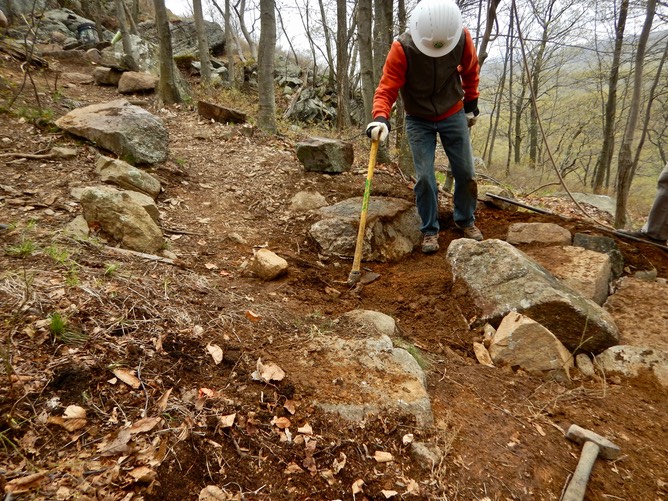 These steps lead to the new crib-wall, seen in the upper left of photo.