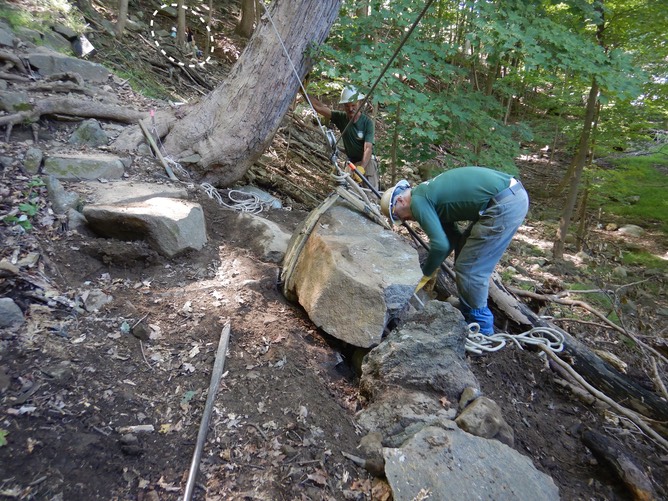 In the circle are the griphoist operators, Linda and Marci, who lifted this huge boulder