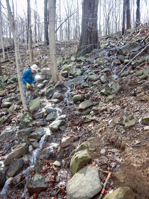 Russ works uphill from the trail to direct the water