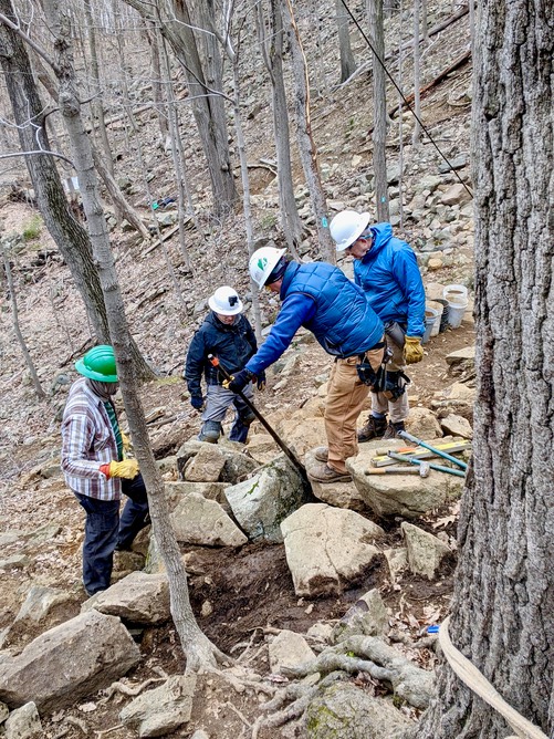 We will fit the rocks together to keep the trail stable