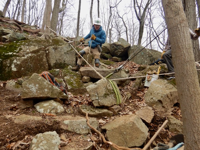Using the belay, Joe keeps this big rock under control