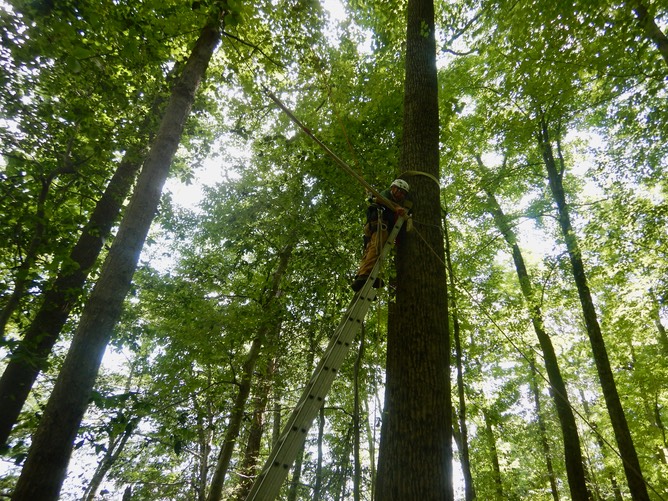 At the top, Dr. Dave connects a block to this spar tree