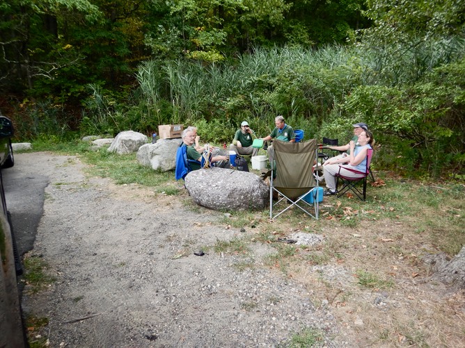 Saturday‘s crew recap meeting back in the shade