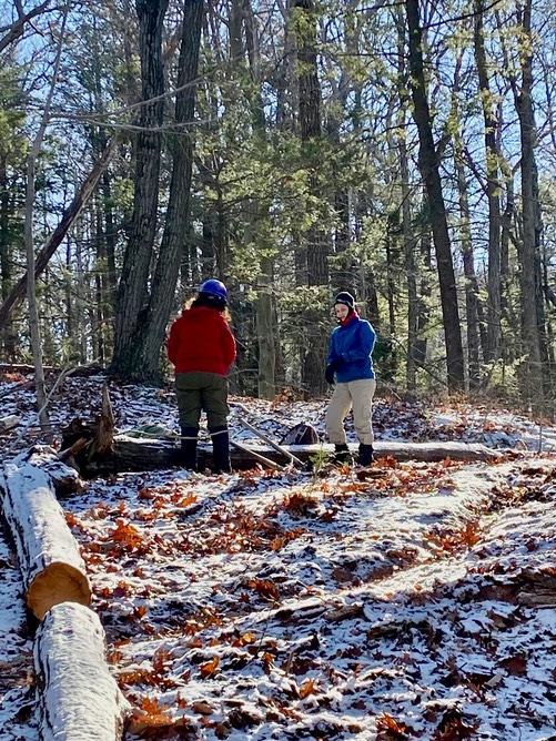 Marci and Linda get ready for more side hilling