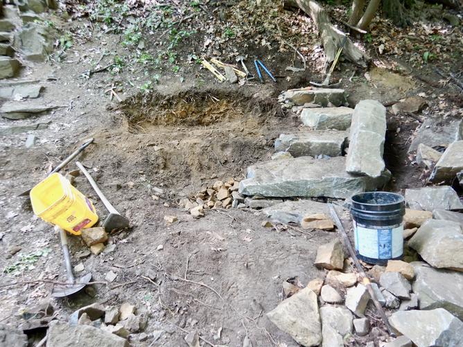Large anchor rocks, also known as gargoyles keeps the steps from moving