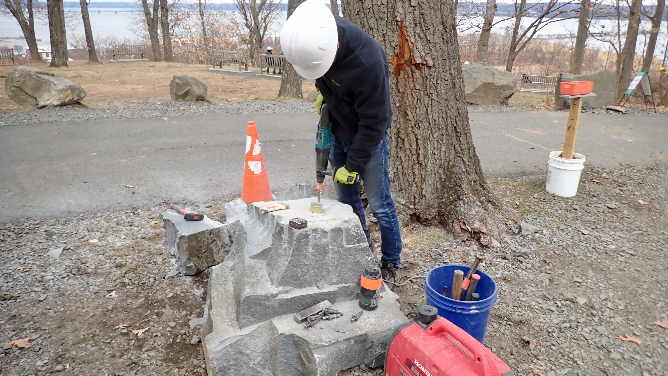 After lunch, George gets to use the hammer drill